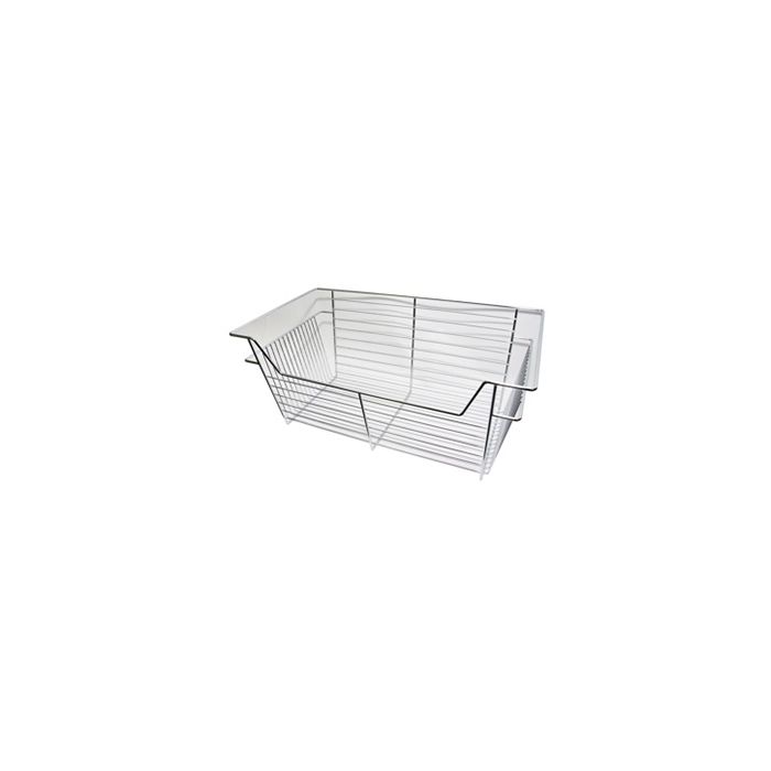 11" deep, 24" wide chrome basket. Triple-coated chrome provides long-lasting style and a modern look. Looks great with all Easy Track finishes! Comes with all hardware to install immediately.