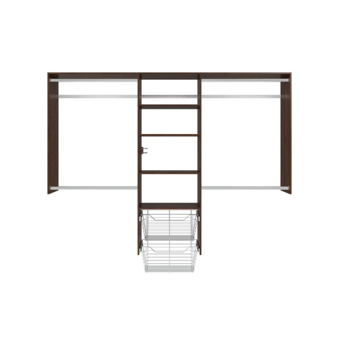 - Organize All the Essentials. Adjustable shelving provides convenient storage for shoes, containers, or folded items. Two sliding chrome baskets will hold shoes, hats, and miscellaneous loose items. Includes sliding, 7-hook rack to hang keys, sunglasses, and other items.