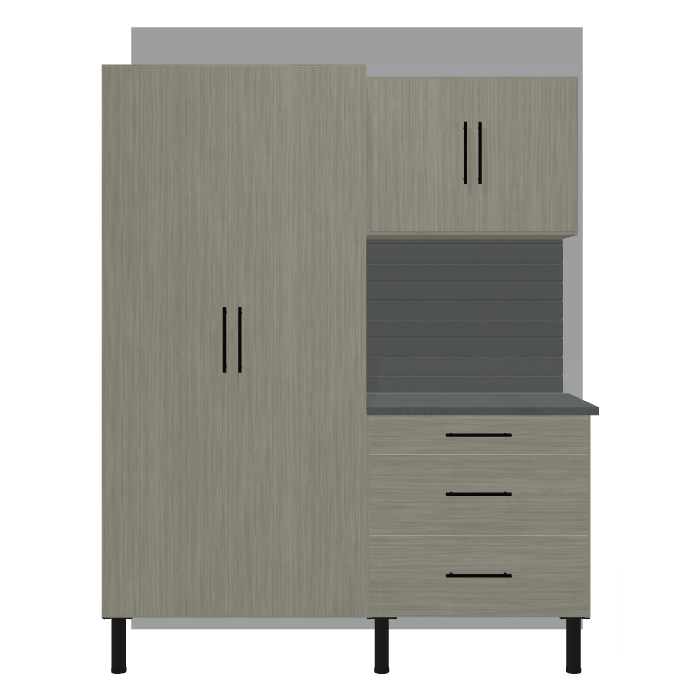 The 72" Wide Pebble Grey Garage Kit is a predesigned setup to help your garage stay organized and functional! This kit includes everything you need to complete the installation. Please note, that a customized solution can be created by contacting our Closet Design Department!