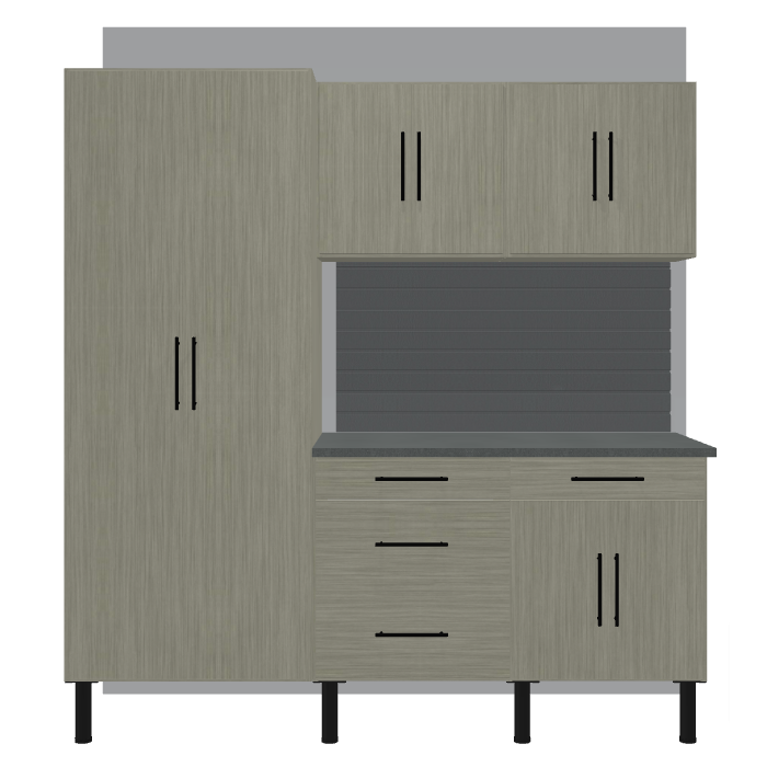 The 84" Wide Pebble Grey Garage Kit is a predesigned set up to help your garage stay organized and functional! This kit includes everything you need to complete the installation. Please note, that a customized solution can be created by contacting our Closet Design Department!