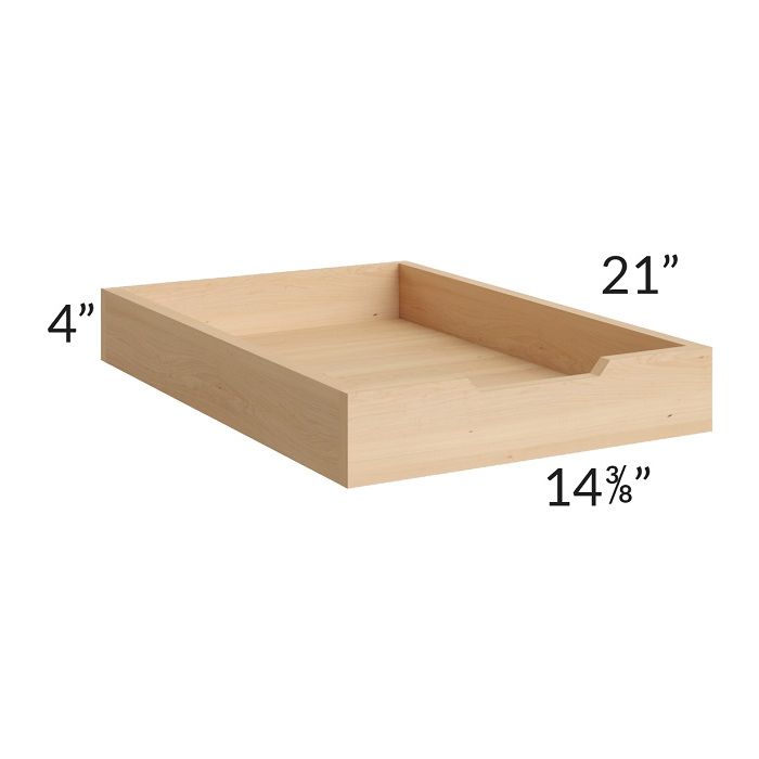 Roll out tray to be used with a 18" wide base cabinet or a 18" wide pantry cabinet. The roll out tray is full extension and will come with the mounting hardware and soft closing glides. *Please note this roll out tray will only work with this collection and will have a natural finish*