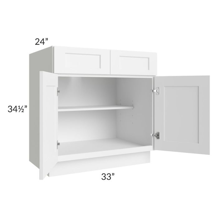 2 door base cabinet with 2 drawer and 1 shelf. There is no center stile on this cabinet.