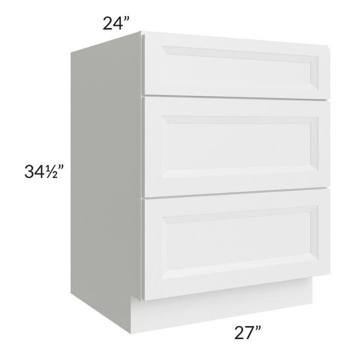 Description / Bayville White 27" 3-Drawer Base Cabinet