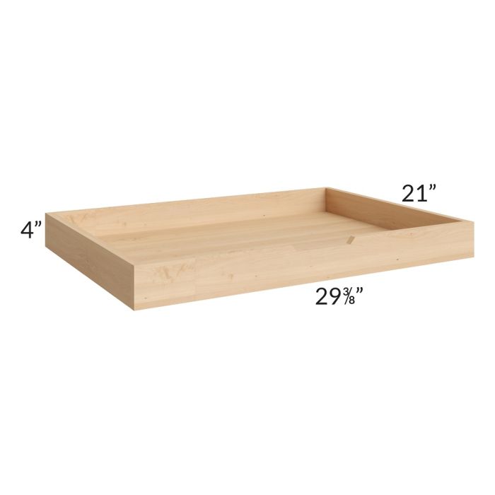 Roll out tray to be used with a 33" wide base cabinet. The roll out tray will come with the mounting hardware and glides. *Please note this roll out tray will only work with this collection and will have a natural finish*