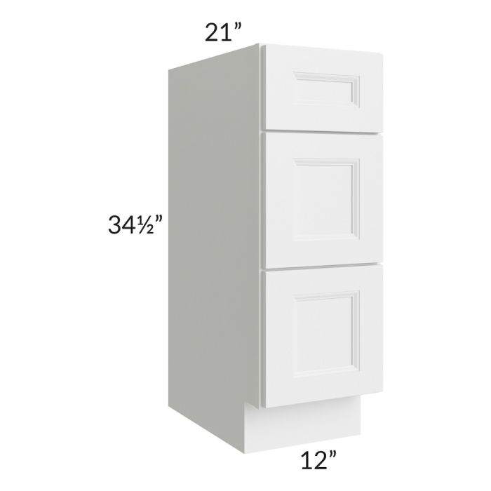 Belfast White 12" Vanity 3-Drawer Base Cabinet