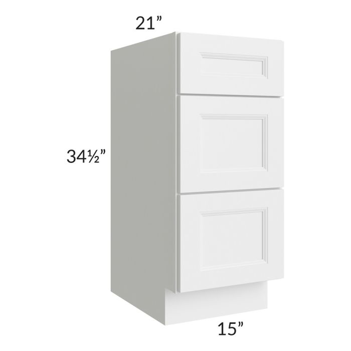 Belfast White 15" Vanity 3-Drawer Base Cabinet