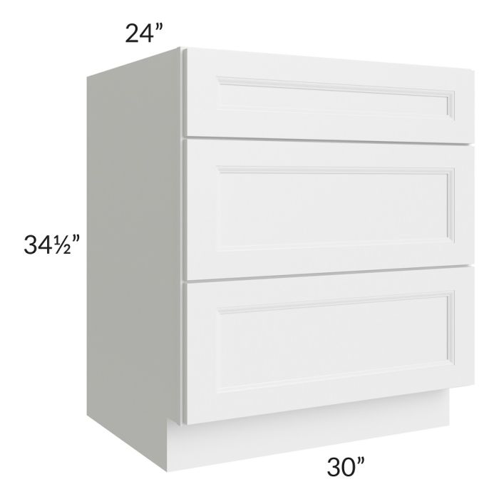 3 drawer base cabinet. Top drawer front is 6-3/4" high, middle and bottom drawer fronts are 11-1/4" high.