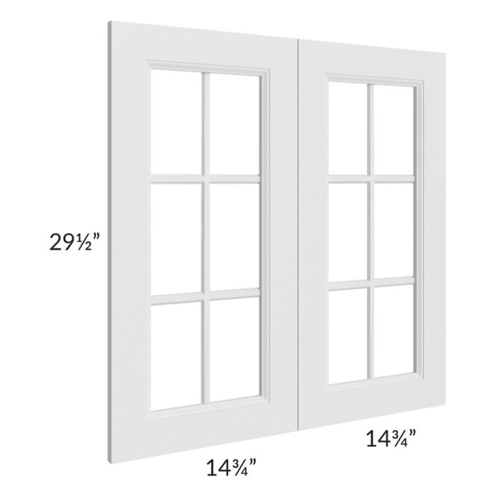 Glass mullion door for a 30x30 wall cabinet. The glass will be pre-installed. A QUANTITY OF 2 MUST BE ORDERED TO RECEIVE A SET OF GLASS DOORS.