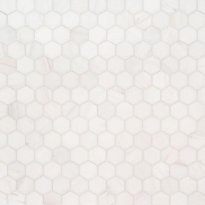 Our gorgeous Bianco Dolomite Hexagon Tile, imported from Turkey feature a soft white background and subtle, dreamy veins and swirls. Use these gorgeous mesh-backed tiles as wall tile, backsplash tile, and floor tile. They are also suitable for countertops, and they coordinate effortlessly with a wide range of other tiles in the collection as well as a variety of other natural tiles and slabs in our inventory.