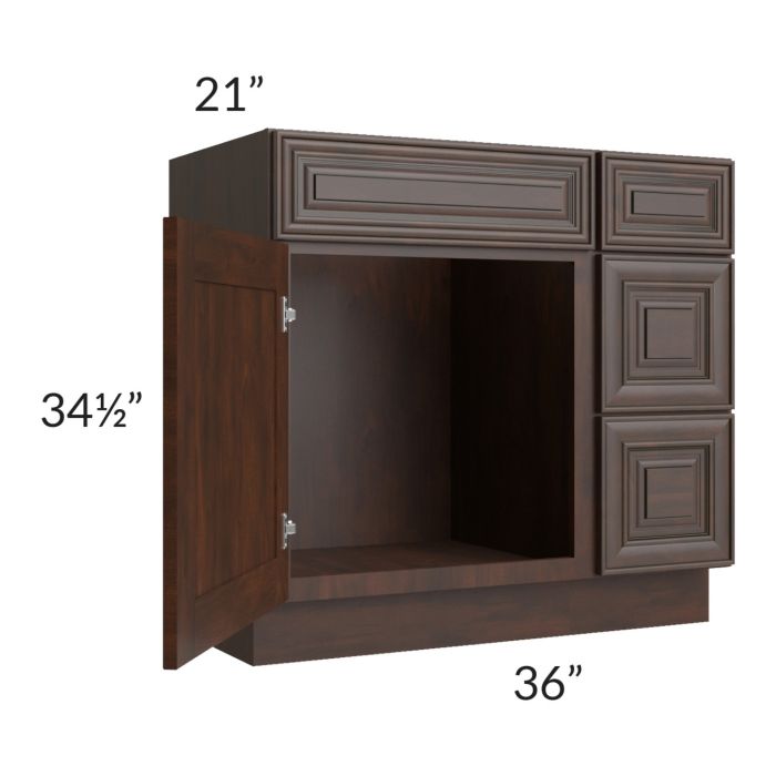 Biscotti Cafe Glazed 36" Vanity Sink Base Cabinet (Drawers on Right)