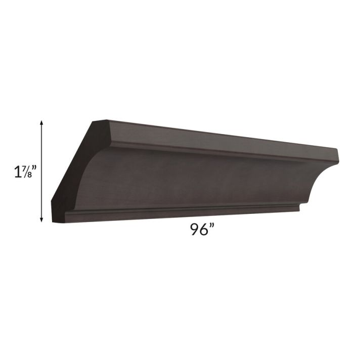 Crown molding that comes in an 8 foot strip. Commonly used to finish the top of wall cabinets. Once installed, the crown will stick out about 1-5/8" from the cabinet and the height off the cabinet will be about 1-7/8".