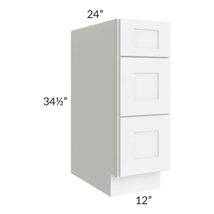 Brilliant White Shaker 12" 3-Drawer Base Cabinet