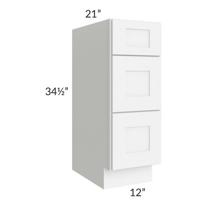 Brilliant White Shaker 12" 3-Drawer Vanity Base Cabinet
