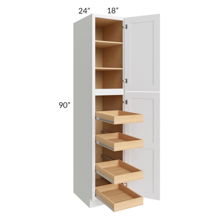 Brilliant White Shaker 18x90x24 Wall Pantry Cabinet with 4 Rollout Trays