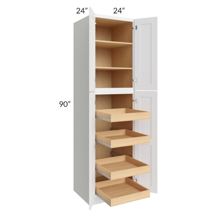 Brilliant White Shaker 24x90x24 Wall Pantry Cabinet with 4 Rollout Trays