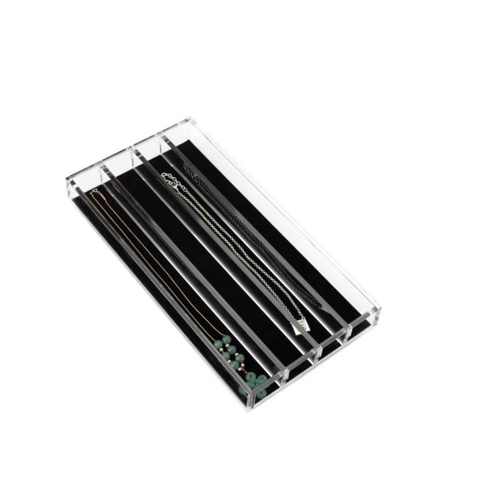 Used in coordination with CVJD undermount jewelry drawers these velvet-lined accessories are designed to give you the ability to organize delicate items like rings, bracelets, and necklaces. The clear acrylic sides make it easy to see all your items. Adjustable dividers provide customization for jewelry in various styles and sizes.