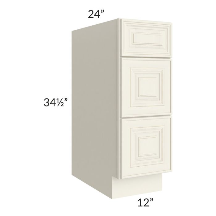 Description / Cambridge Antique White Glaze 12" 3-Drawer Base Cabinet