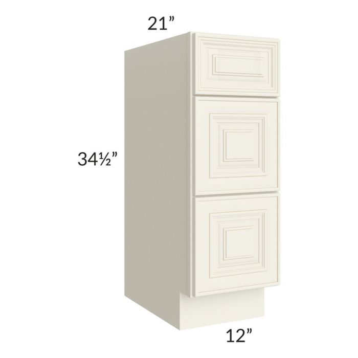 Cambridge Antique White Glaze 12" 3-Drawer Vanity Base Cabinet