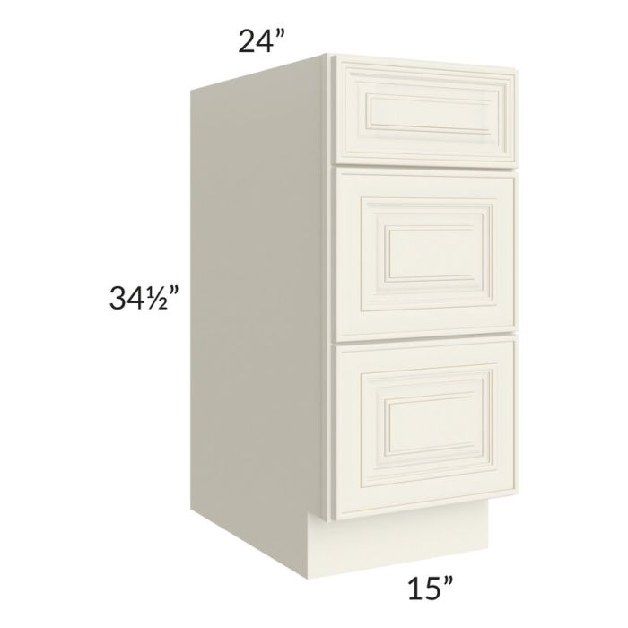 Description / Cambridge Antique White Glaze 15" 3-Drawer Base Cabinet