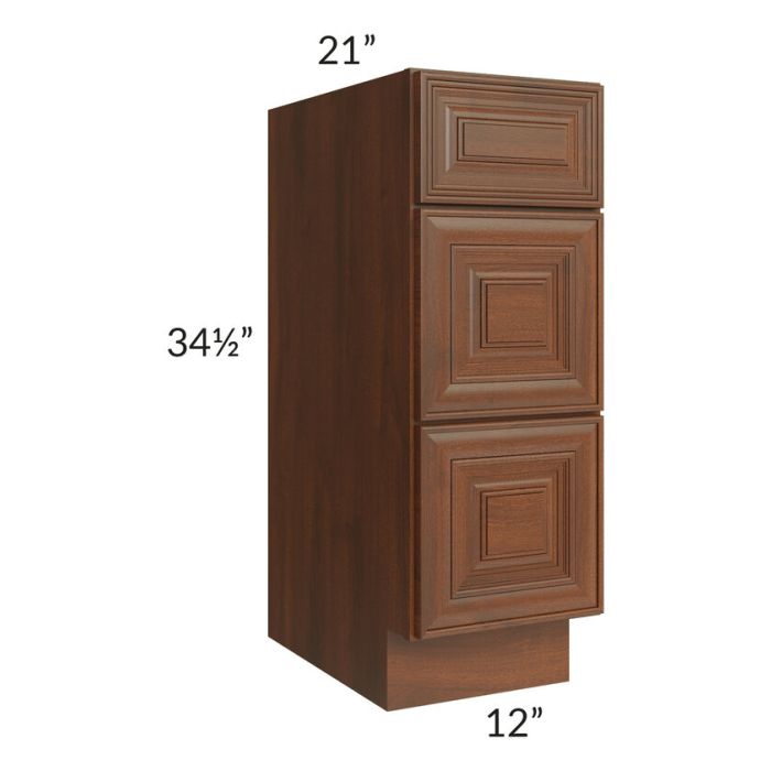 Description / Cambridge Saddle Glaze 12" 3-Drawer Vanity Base Cabinet