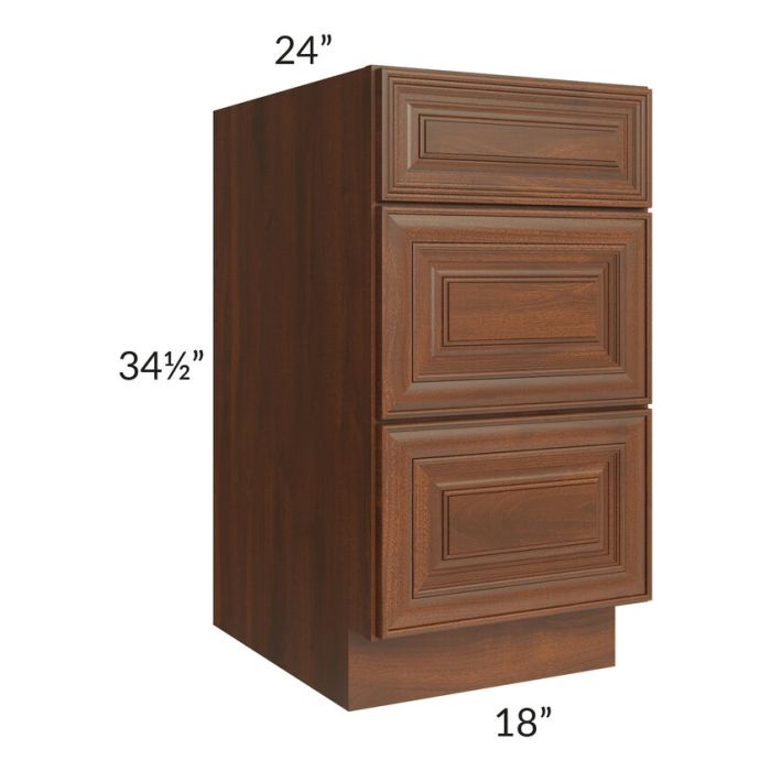 Description / Cambridge Saddle Glaze 18" 3-Drawer Base Cabinet