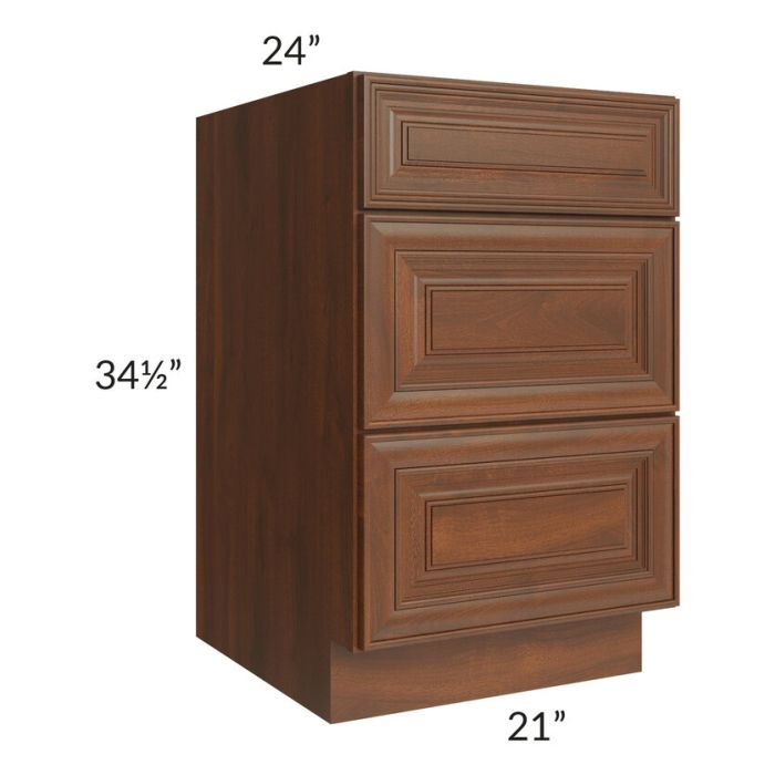 Description / Cambridge Saddle Glaze 21" 3-Drawer Base Cabinet