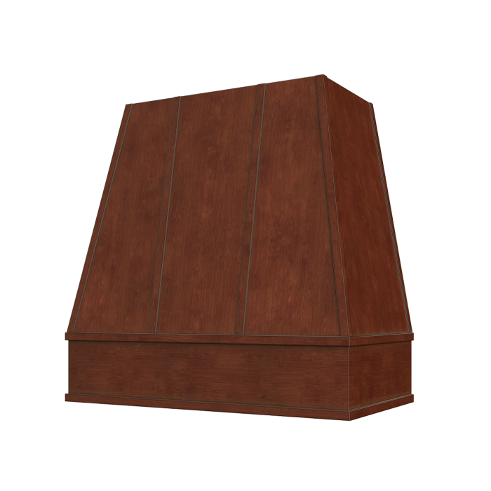 Strapped, tapered hood with block molding. Features a plywood and Maple construction. Please click into the product to see more detailed specifications. Please note the hood is a custom item so will ship separately from the cabinet order in approx 4-6 weeks.