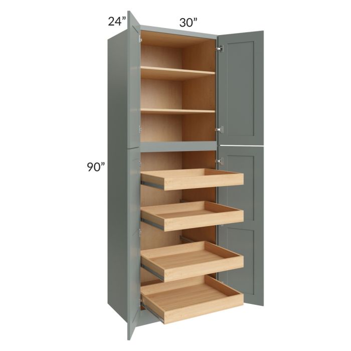 Catalina Meadow Green 30x90x24 Wall Pantry Cabinet with 4 Rollout Trays - Low stock through March