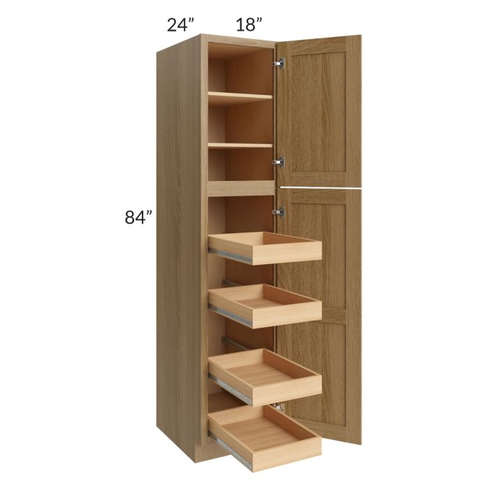 Catalina Toffee 18x84x24 Wall Pantry Cabinet with 4 Rollout Trays