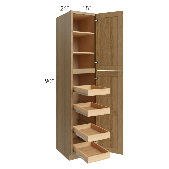 Catalina Toffee 18x90x24 Wall Pantry Cabinet with 4 Rollout Trays