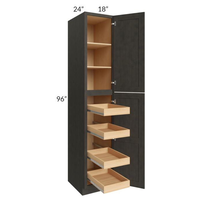 Charcoal Grey Shaker 18x96x24 Wall Pantry Cabinet with 4 Rollout Trays