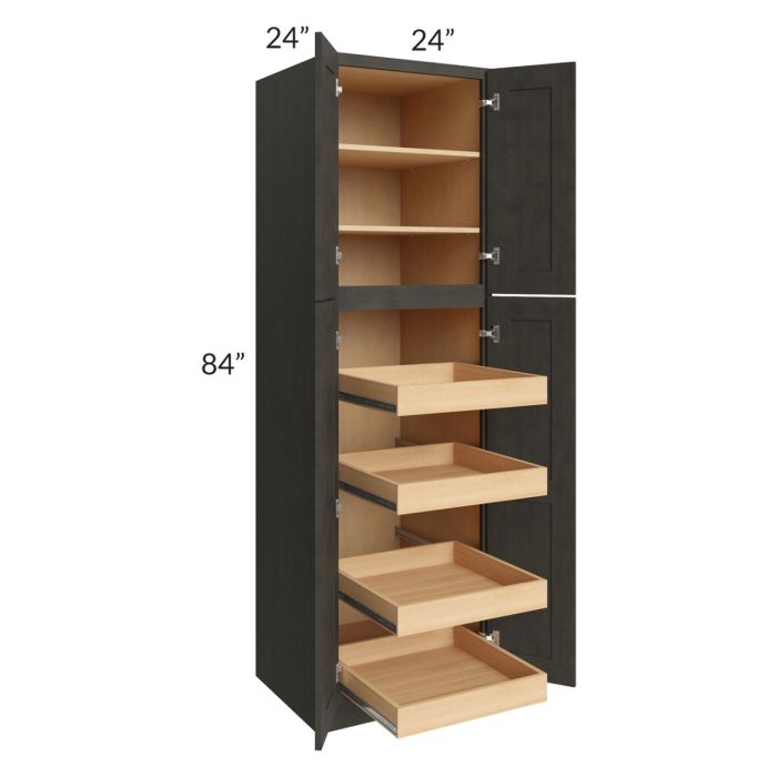 Charcoal Grey Shaker 24x84x24 Wall Pantry Cabinet with 4 Rollout Trays