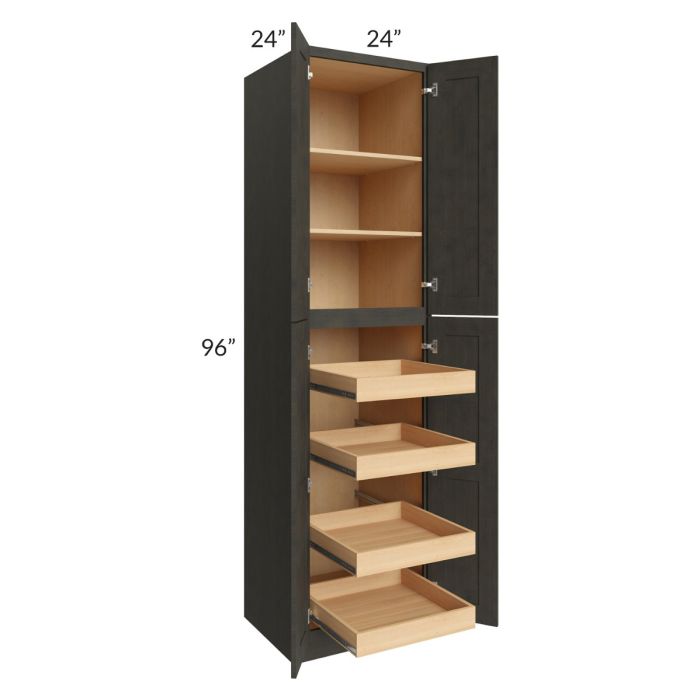 Charcoal Grey Shaker 24x96x24 Wall Pantry Cabinet with 4 Rollout Trays