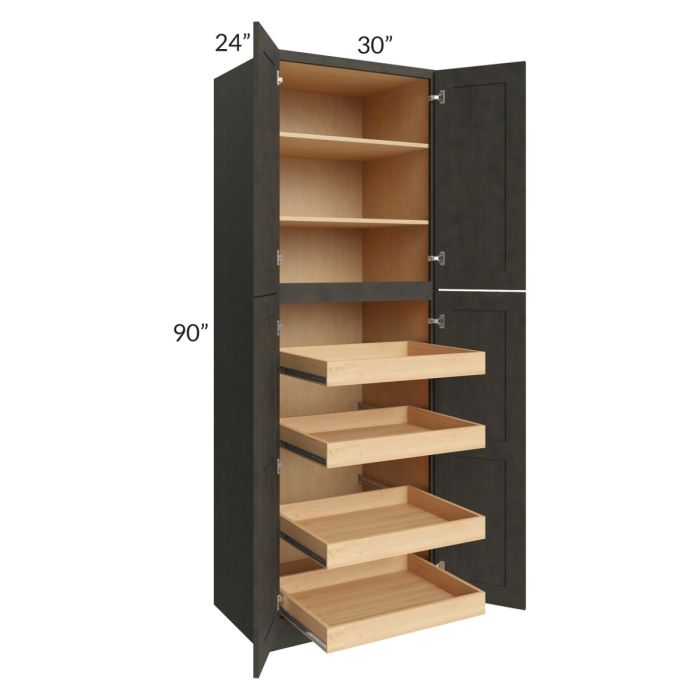 Charcoal Grey Shaker 30x90x24 Wall Pantry Cabinet with 4 Rollout Trays