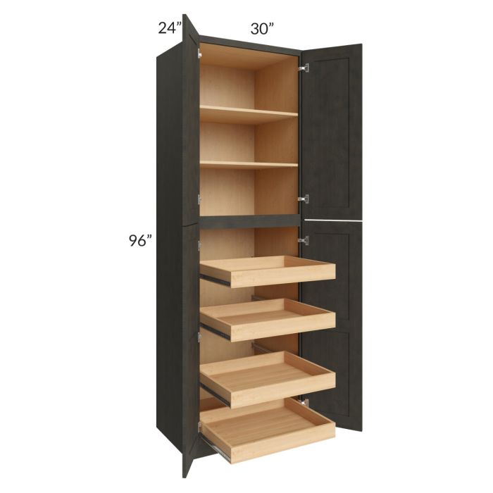 Charcoal Grey Shaker 30x96x24 Wall Pantry Cabinet with 4 Rollout Trays
