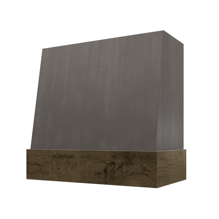 Description / Charcoal Grey Shaker Wilmington Smooth Angled Hood with Chestnut Finished Banding