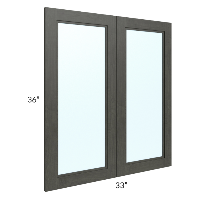 Glass doors for a wall cabinet that is 33" wide and 36" high. Frosted glass is included. The actual cabinet must be purchased separately.