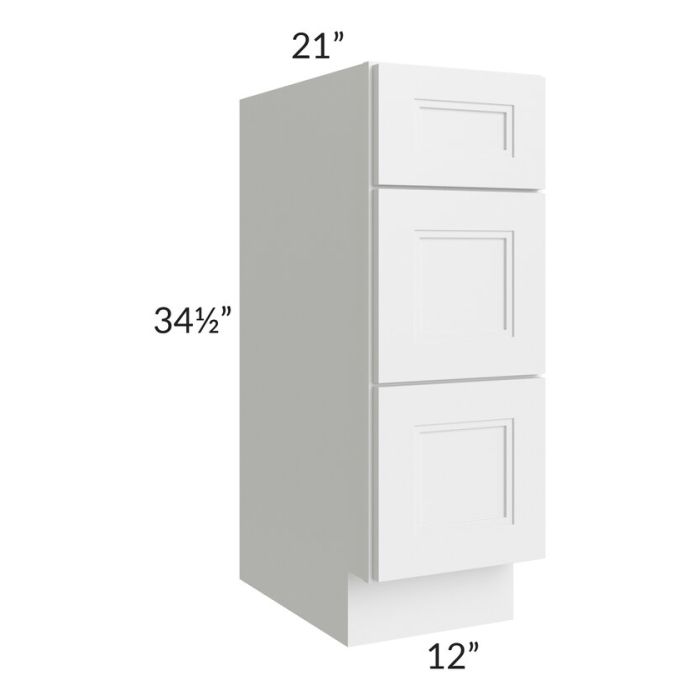 Charlotte White 12" Vanity 3-Drawer Base Cabinet