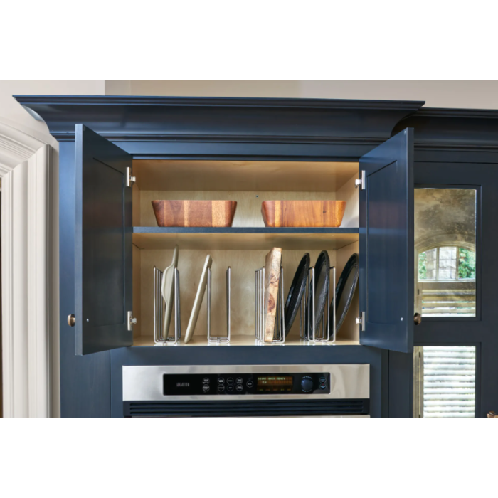 Storing platters and cookie trays just got easier with the U-Shaped Tray Divider. Use one or more to create custom storage space in either wall or base cabinets. The sturdy construction and beautiful chrome finish provide durability and style while the easy four-screw installation gets you organizing your cabinets in seconds.