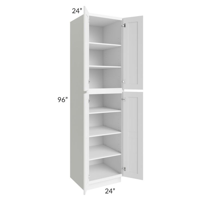 Wall pantry cabinet that has 4 doors, 2 smaller doors on top and 2 larger doors on bottom.This pantry cabinet comes with 1 fixed shelf and 6 adjustable shelves. Measurements are as follows: Top/Middle/Bottom door width is 11-11/16". Top door height is 41-5/16". Middle/Bottom door height is 49-1/4".