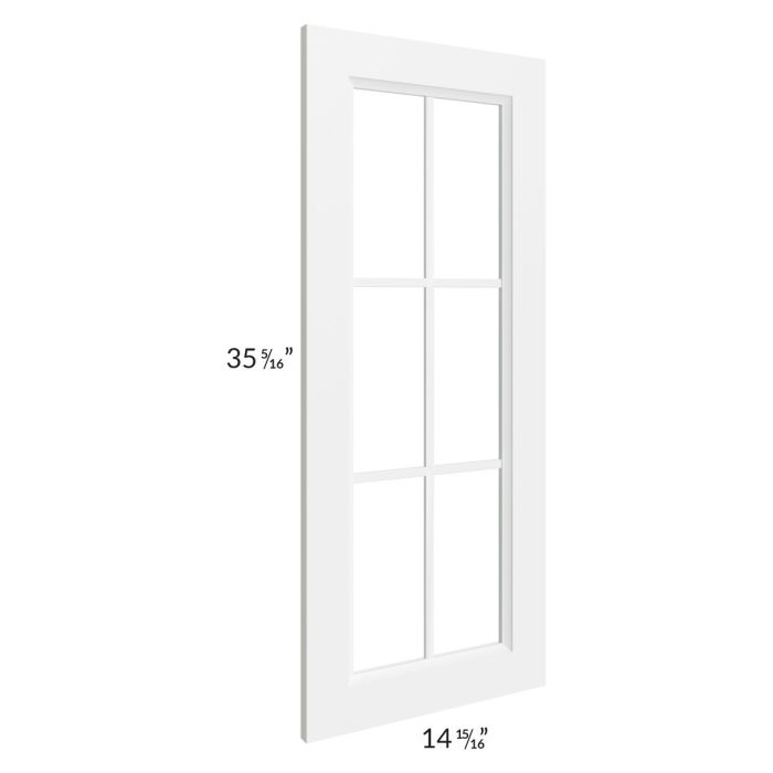 Mullion glass door for a corner wall cabinet that is 27" wide, 36" high, and 15" deep. Clear glass is included. The actual cabinet must be purchased separately.