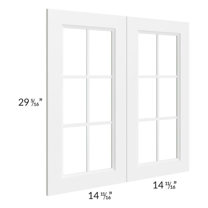 Mullion glass door for a wall cabinet that is 30" wide and 30" high. This is a 2 piece set with clear glass included. The actual cabinet must be purchased separately.