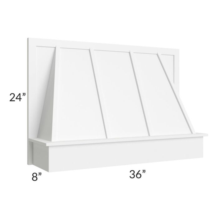 Wood range hood with no decorative rail. This hood is designed to be installed between two cabinets. This is for an actual hood, not a hood cover and a separate liner and blower will be needed.
