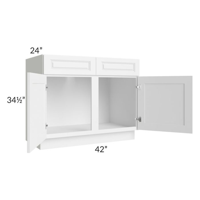 2 door sink base cabinet that comes with 2 false drawer front and no shelves. This cabinet does have a center stile and a full 1/2" back.