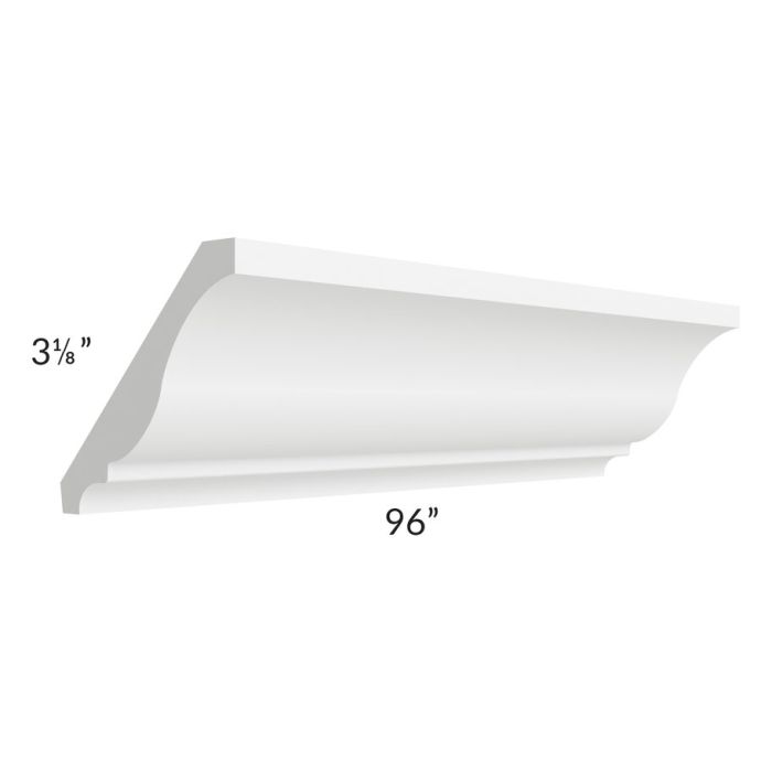 Crown molding. Installed height will be 3-1/8" and installed depth will be 2-5/8" (how far out it will extend from the cabinet).