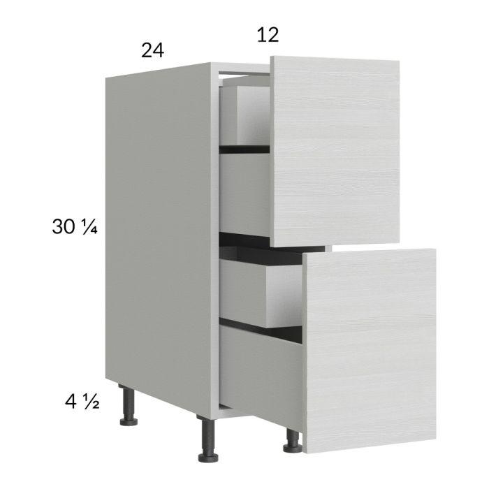 Euro White Grain 12" 2-Drawer Base Cabinet with 2 Inner Drawers