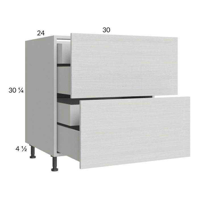Euro White Grain 30" 2-Drawer Base Cabinet with 2 Inner Drawers