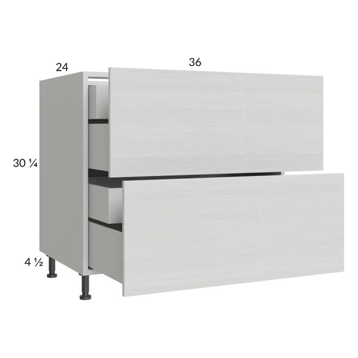 Euro White Grain 36" 2-Drawer Base Cabinet with 2 Inner Drawers