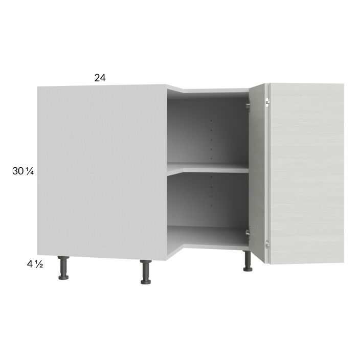 Easy reach corner cabinet with a bi-fold door that takes up 36" of wall space from the corner out, on each wall. This cabinet has 2 adjustable wood shelves. Finished end panels are required for exposed sides.