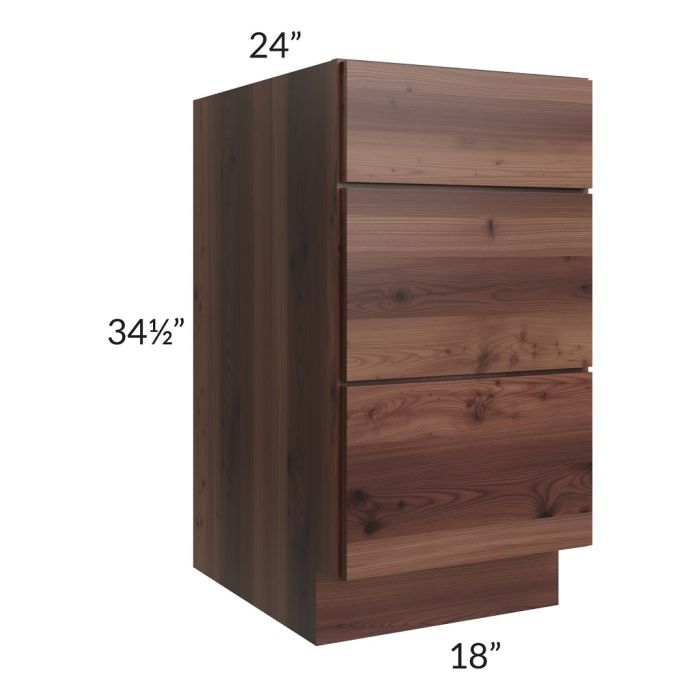 Farmhouse Walnut Shaker 18" 3-Drawer Base Cabinet